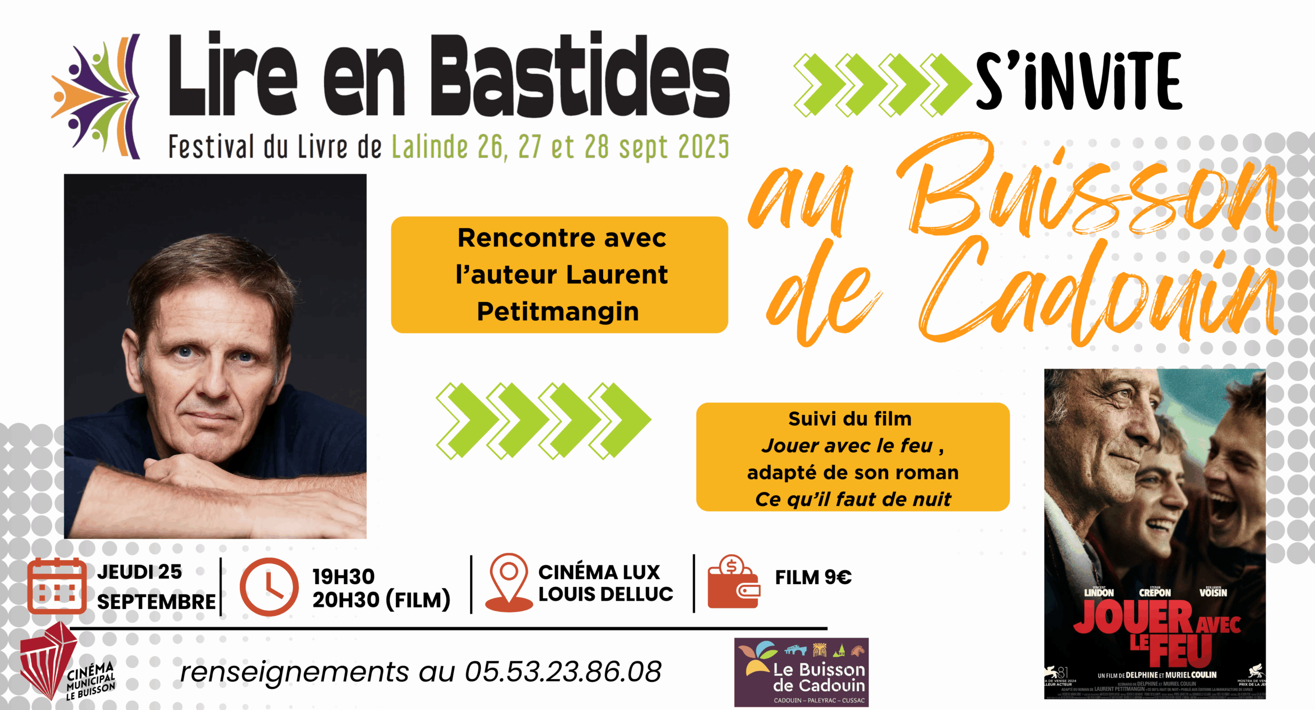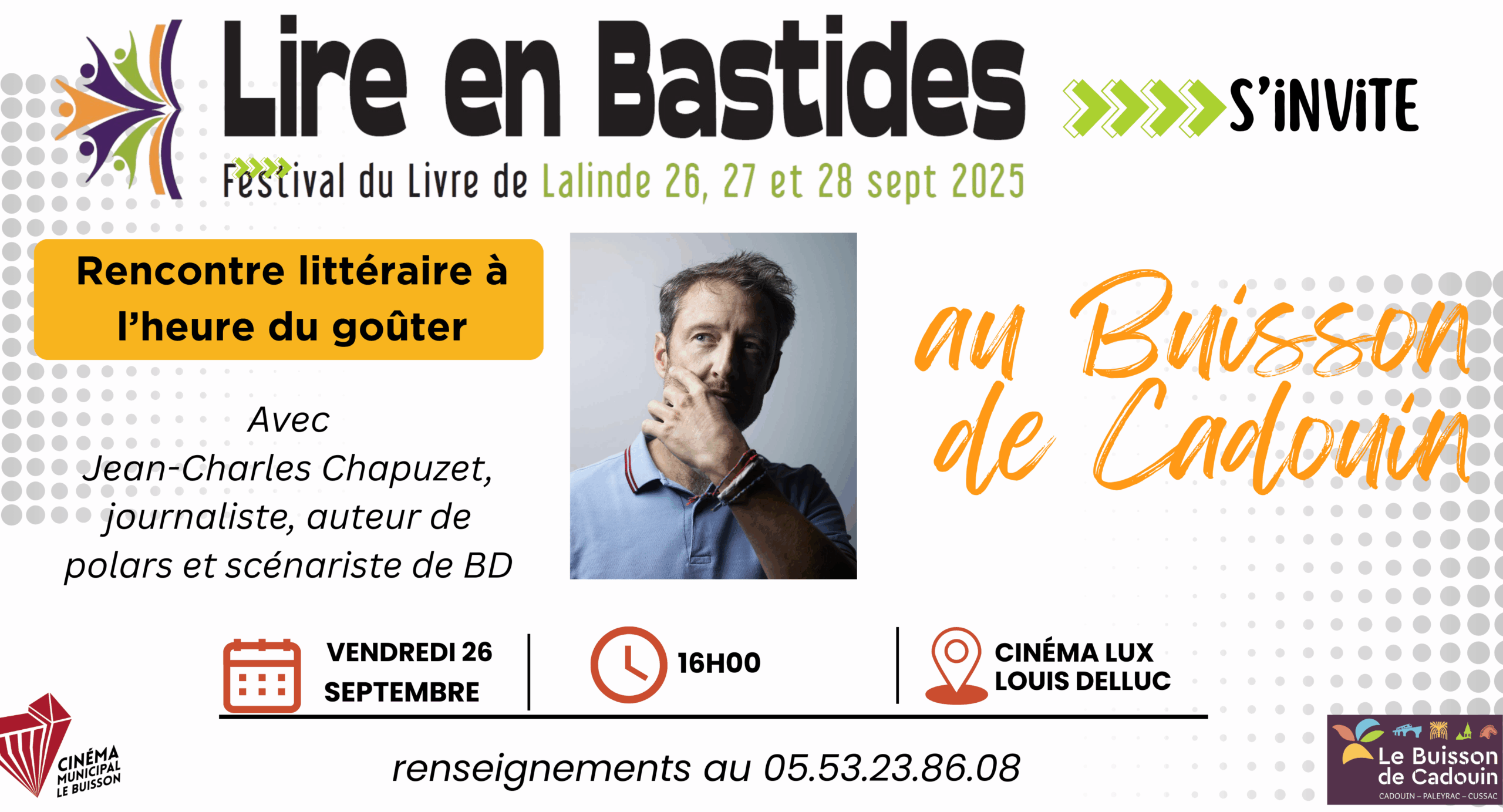 Dans le cadre du festival littéraire “Lire en Bastides”, deux événements au cinéma Lux du Buisson-de-Cadouin