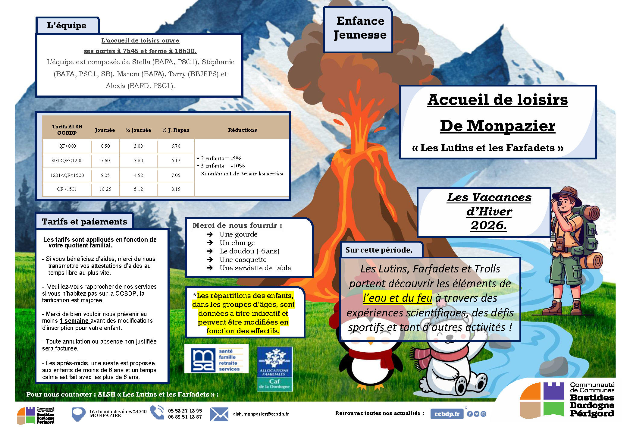 Programme du centre de loisirs de Monpazier – 09 février – 20 février 2026