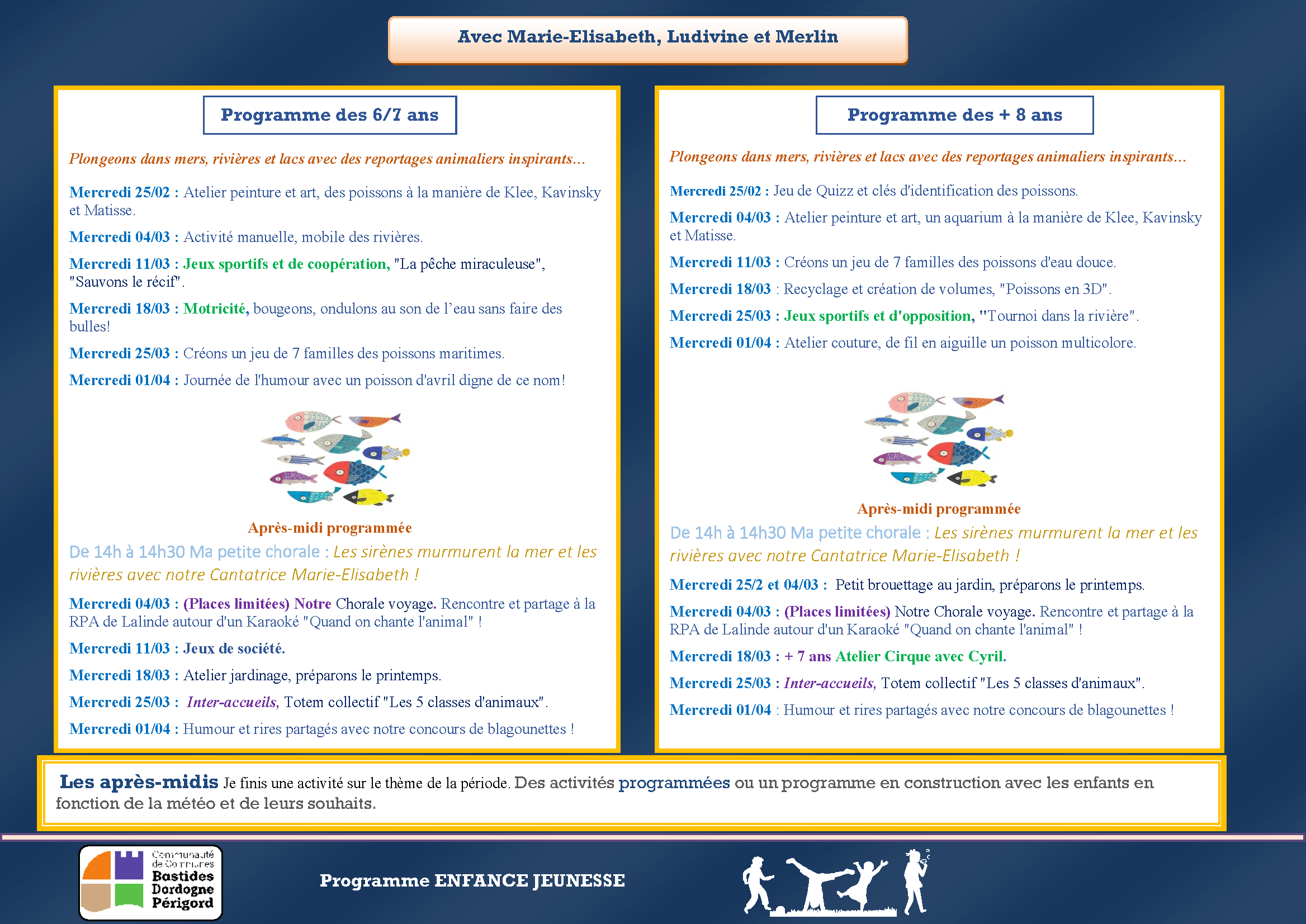 Mercredis 25 fevrier – 01 avril 2026