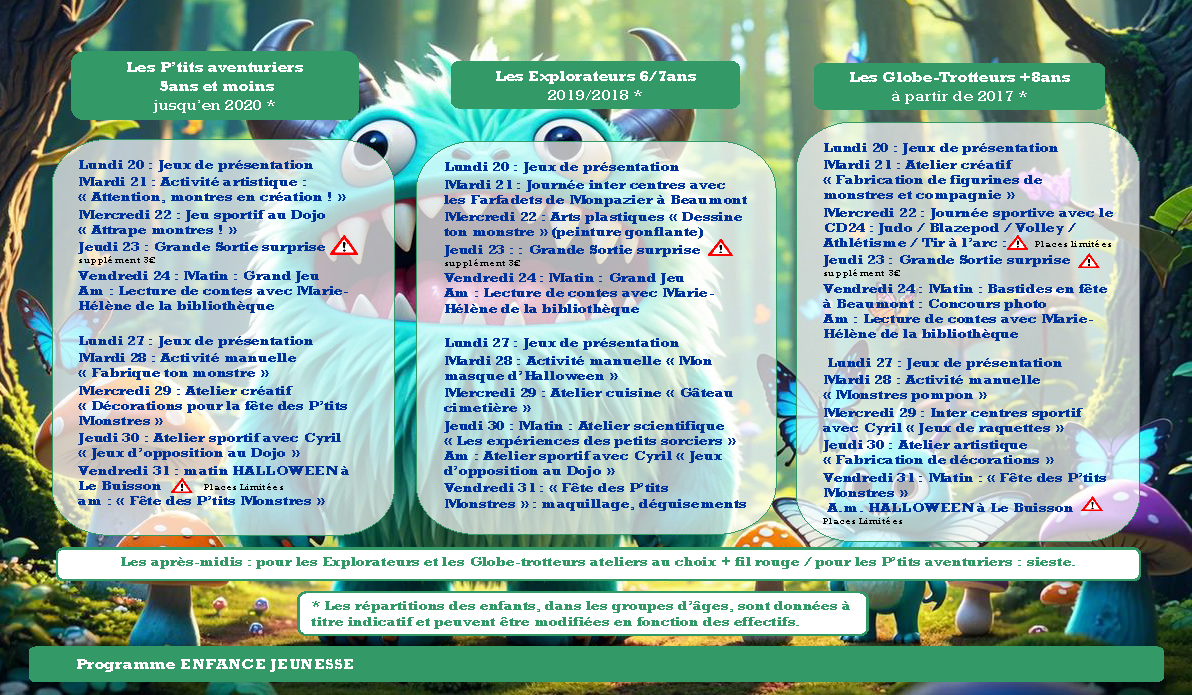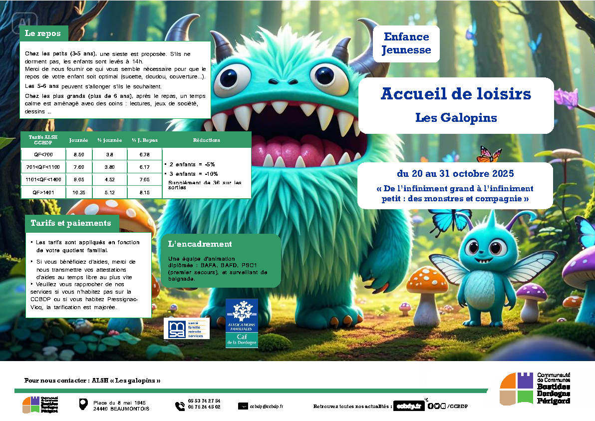 Programme des vacances d’automne 2025 du centre de loisirs de Beaumontois-en-Périgord