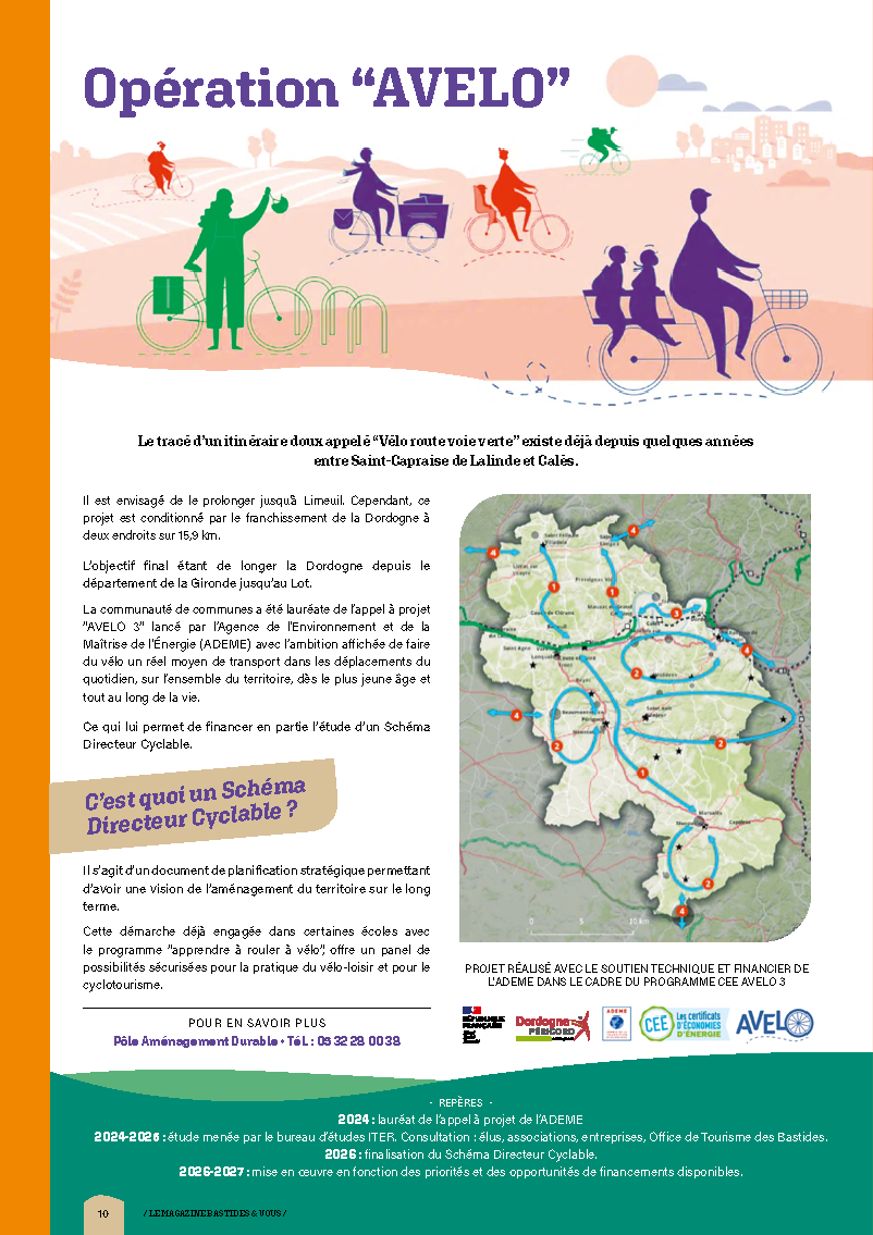 Le schéma directeur cyclable de la CC Bastide Dordogne Périgord, engagé en 2025, s’inscrit dans la poursuite des démarches engagées avec la réalisation du PCAET (Plan Climat Air Energie Territorial) en 2018, le contrat de transition écologique du Bergeracois en 2019, et le projet de territoire dans le cadre de la stratégie du programme Petites Villes de Demain (PVD).